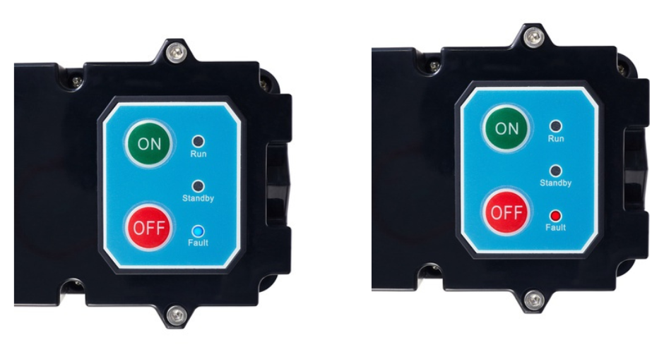 The BLUE fault light means there is “over amperage”, but how this over amperage is caused can be for various reasons.